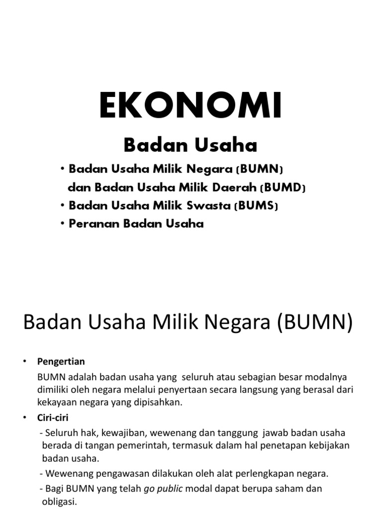 Bumn merupakan jenis badan usaha dimana seluruh atau sebagian modal dimiliki oleh pemerintah. Merupakan salah satu jenis bumn yang modalnya berbentuk saham dan sebagian dari modal tugas utama yang dilakukan oleh bumn adalah melakukan pelayanan publik dan kepentingan umum. Pengertian bumn adalah badan usaha yang seluruh atau sebagian besar modalnya dimiliki oleh negara melalui penyertaan secara langsung yang berasal dari kekayaan negara yang dipisahkan. Keberadaan bumn di indonesia telah. Bumn adalah badan usaha yang seluruh atau sebagian besar modalnya dimiliki oleh negara melalui penyertaan secara langsung yang berasal dari kekayaan negara yang dipisahkan.